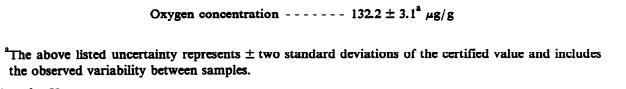該SRM的驗證是基于兩種獨立的技術,即惰性氣體聚變紅外熱導率和14 MeV中子活化分析。在任何分析方法中,至少應使用1g的物質。