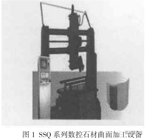 圖1為山東大學(xué)石材工程技術(shù)研究中心研制的SSQ系列數(shù)控石材曲面加工設(shè)備。該設(shè)備采用了可靠的三坐標數(shù)控系統(tǒng),刀具軸水平布置,鋸片或磨輪垂直切割。該設(shè)備可加工任意曲率、形狀的內(nèi)、外曲面。